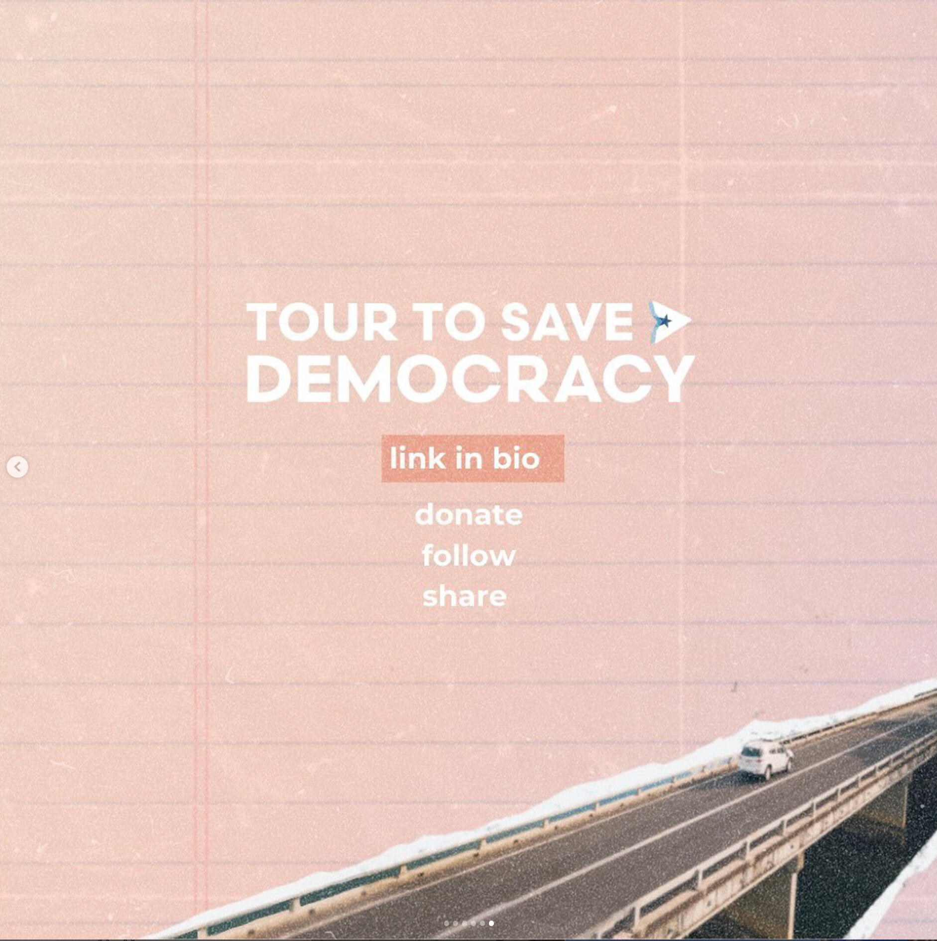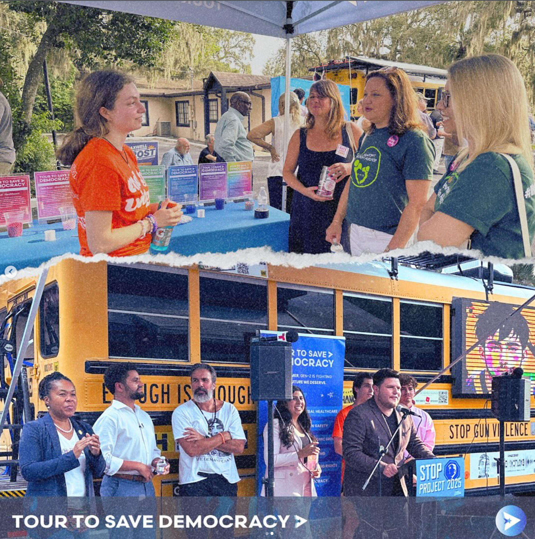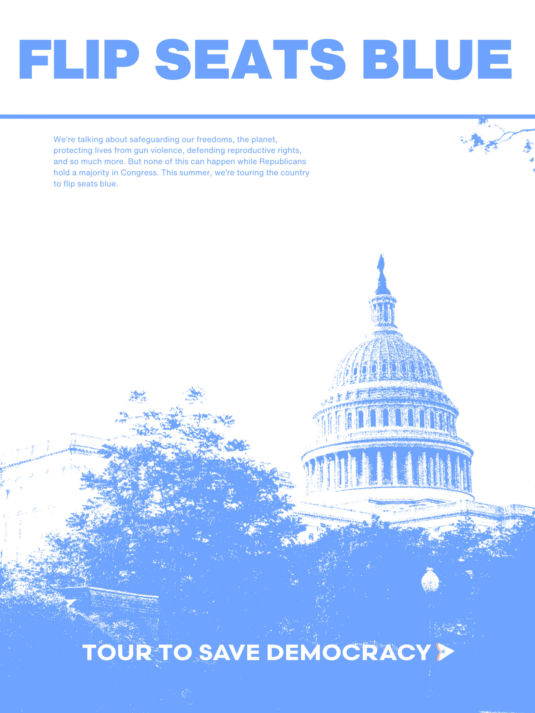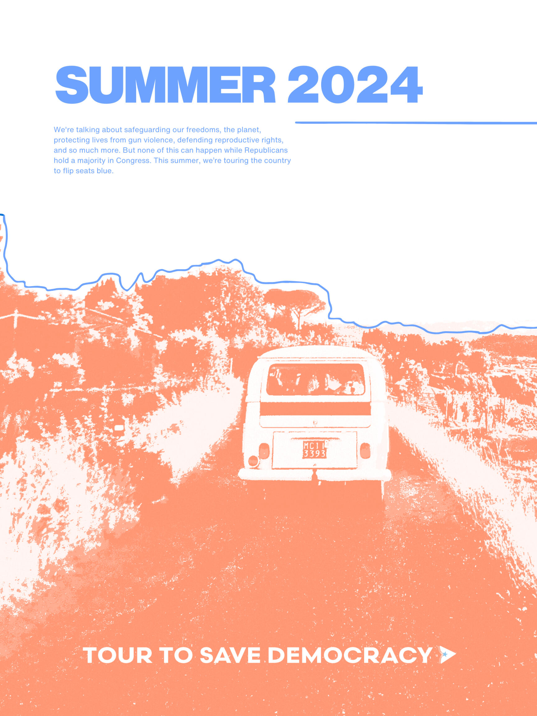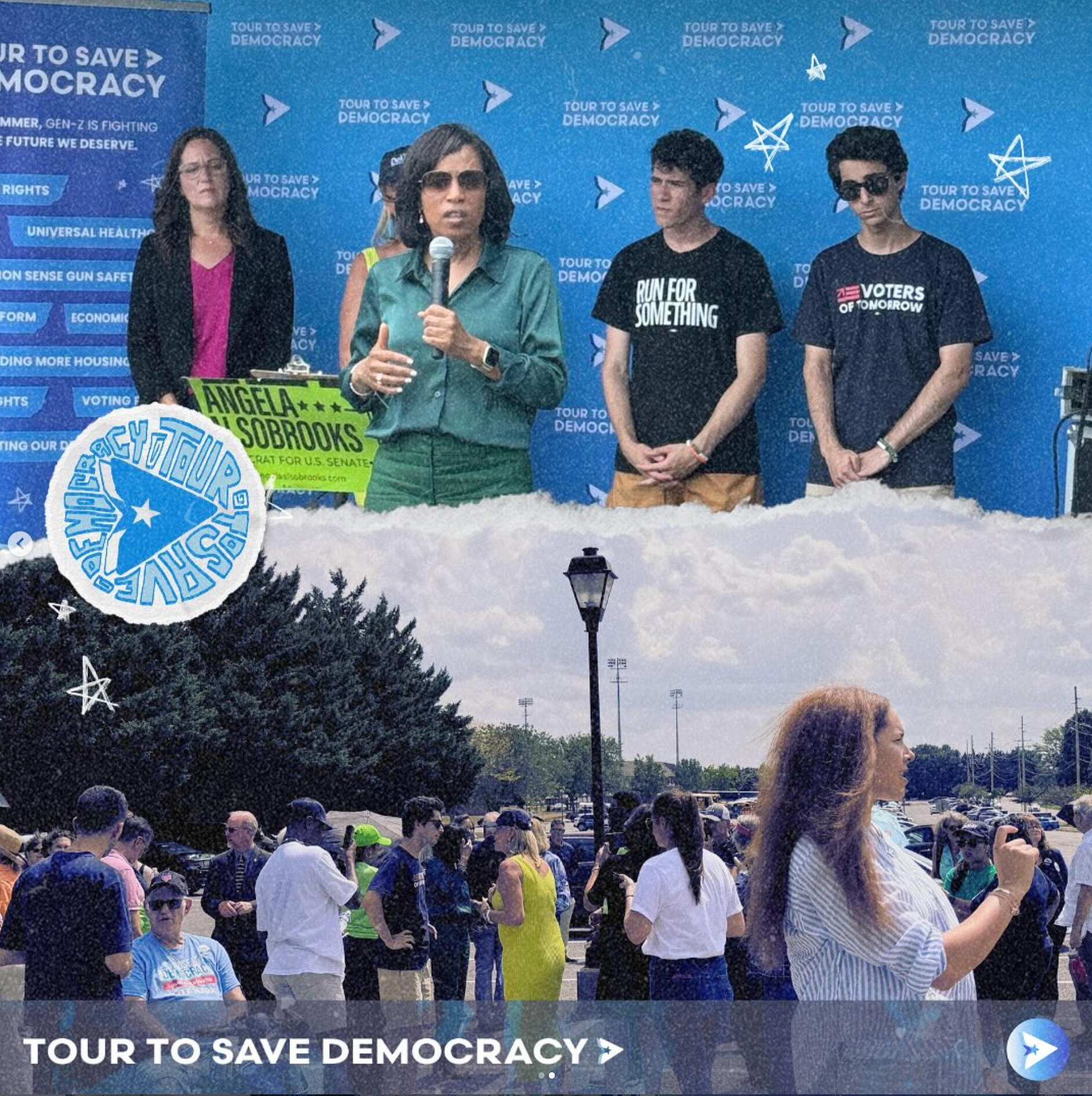 Tour to Save DemocracyAs Creative Director, I built the brand identity and graphics behind this one of a kind, gen z led project. Our work scaled from tangible, in-person events in over 21 cities across the US, averaging in hundreds of attendees at each stop, to social media initiatives with over 400+ million impressions.