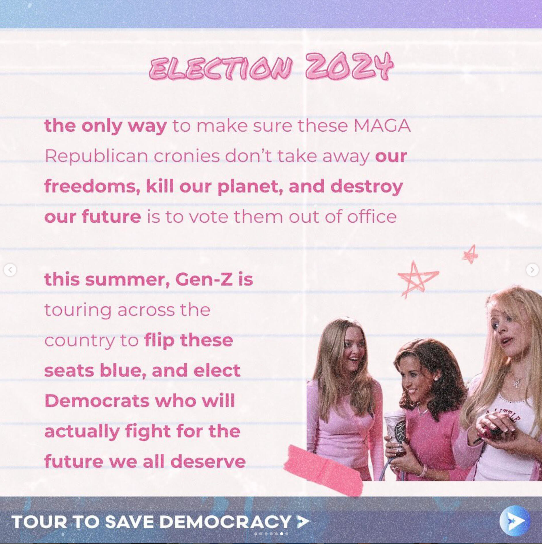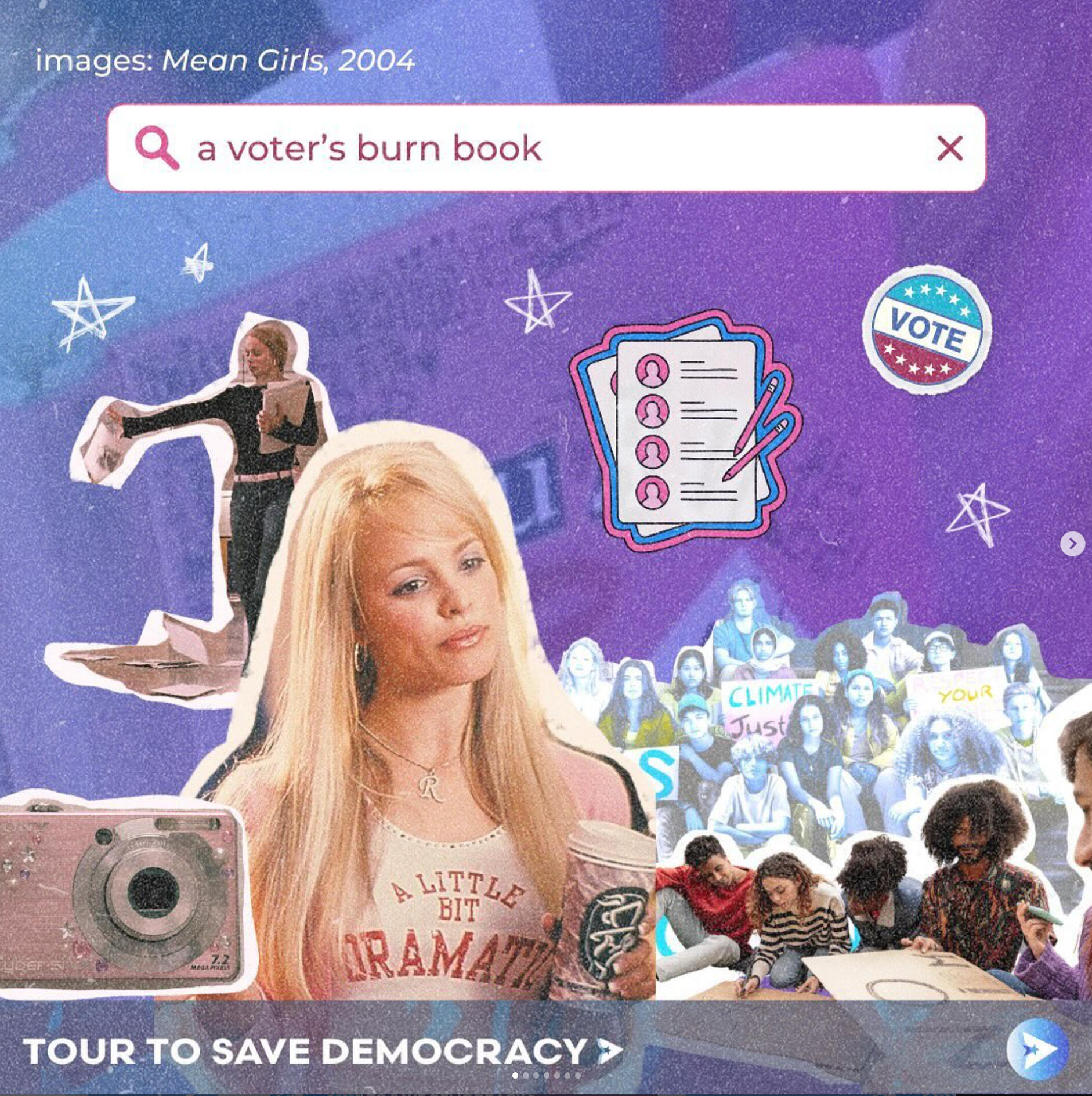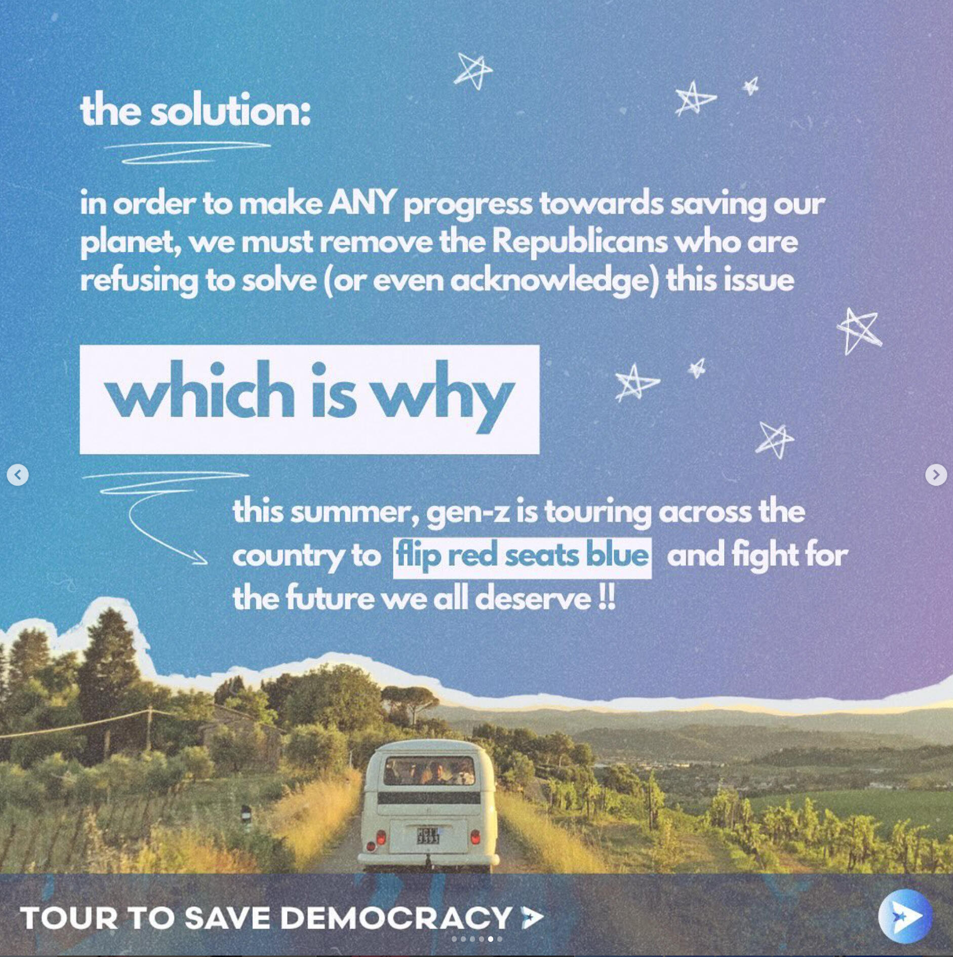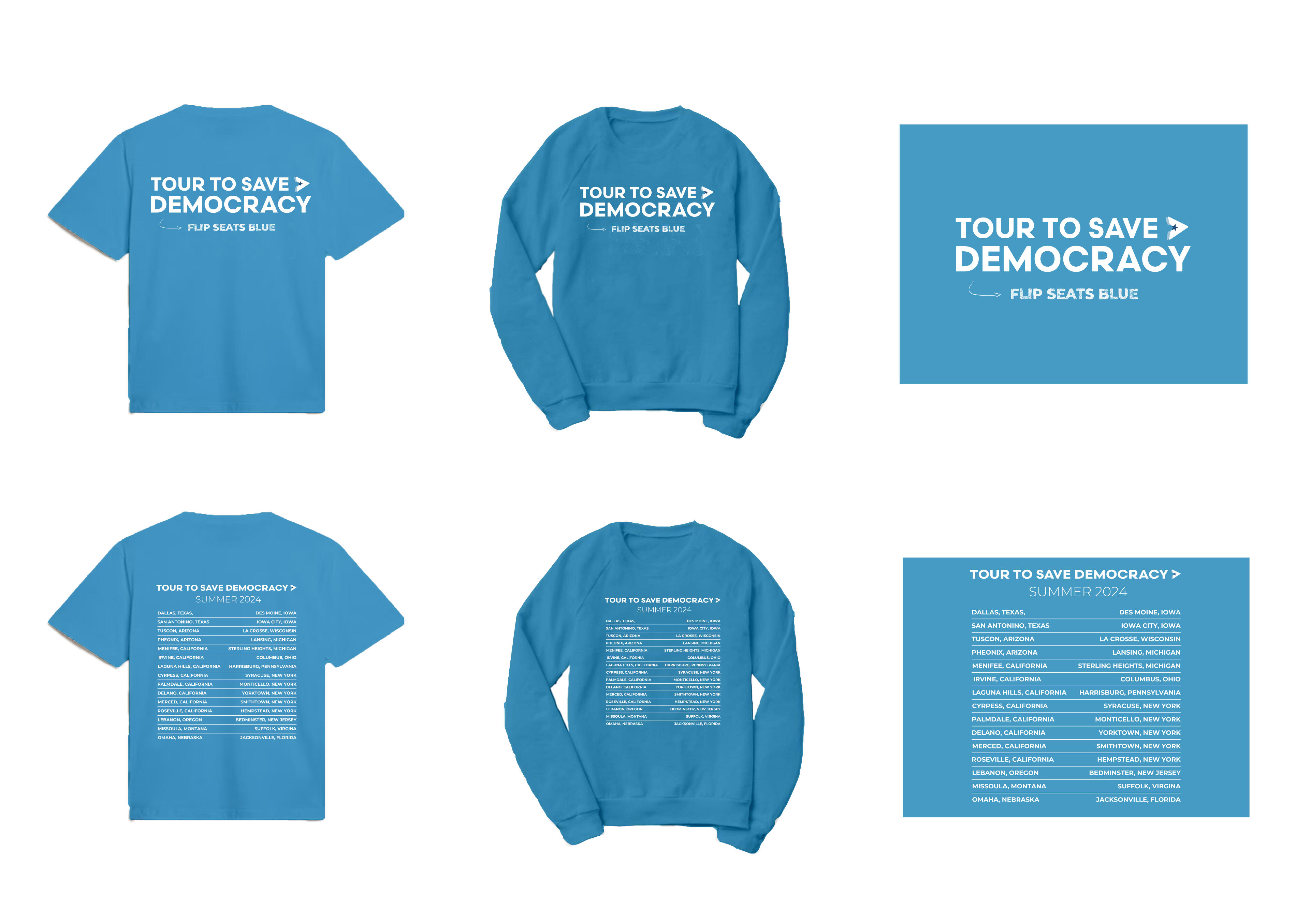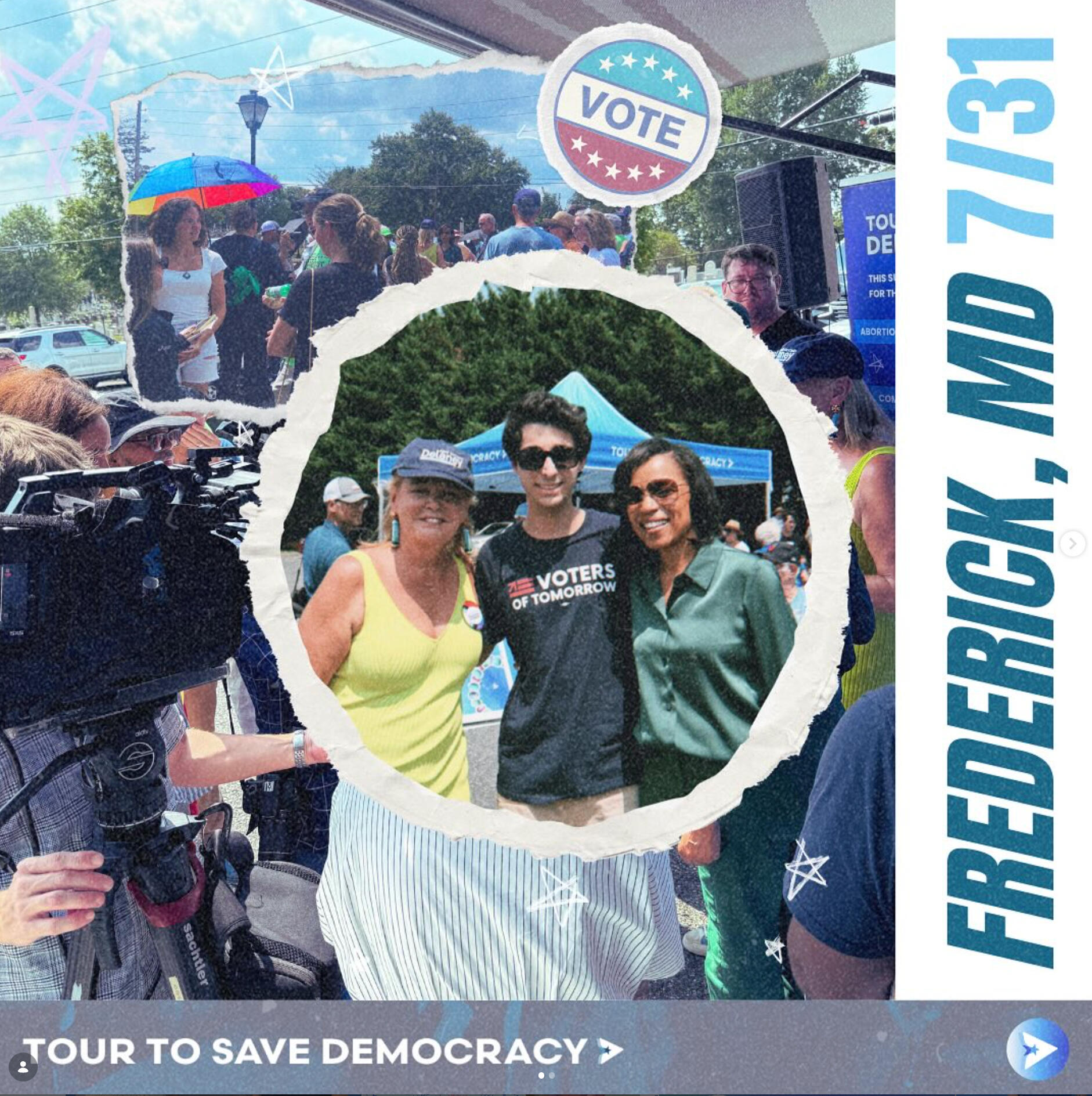 Tour to Save DemocracyAs Creative Director, I built the brand identity and graphics behind this one of a kind, gen z led project. Our work scaled from tangible, in-person events in over 21 cities across the US, averaging in hundreds of attendees at each stop, to social media initiatives with over 400+ million impressions.
