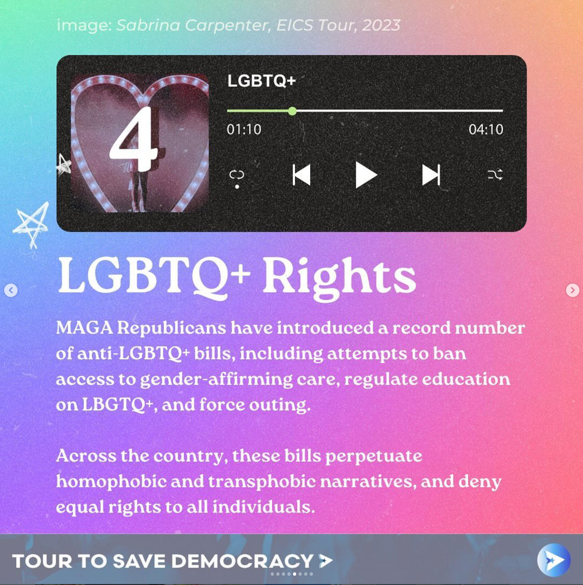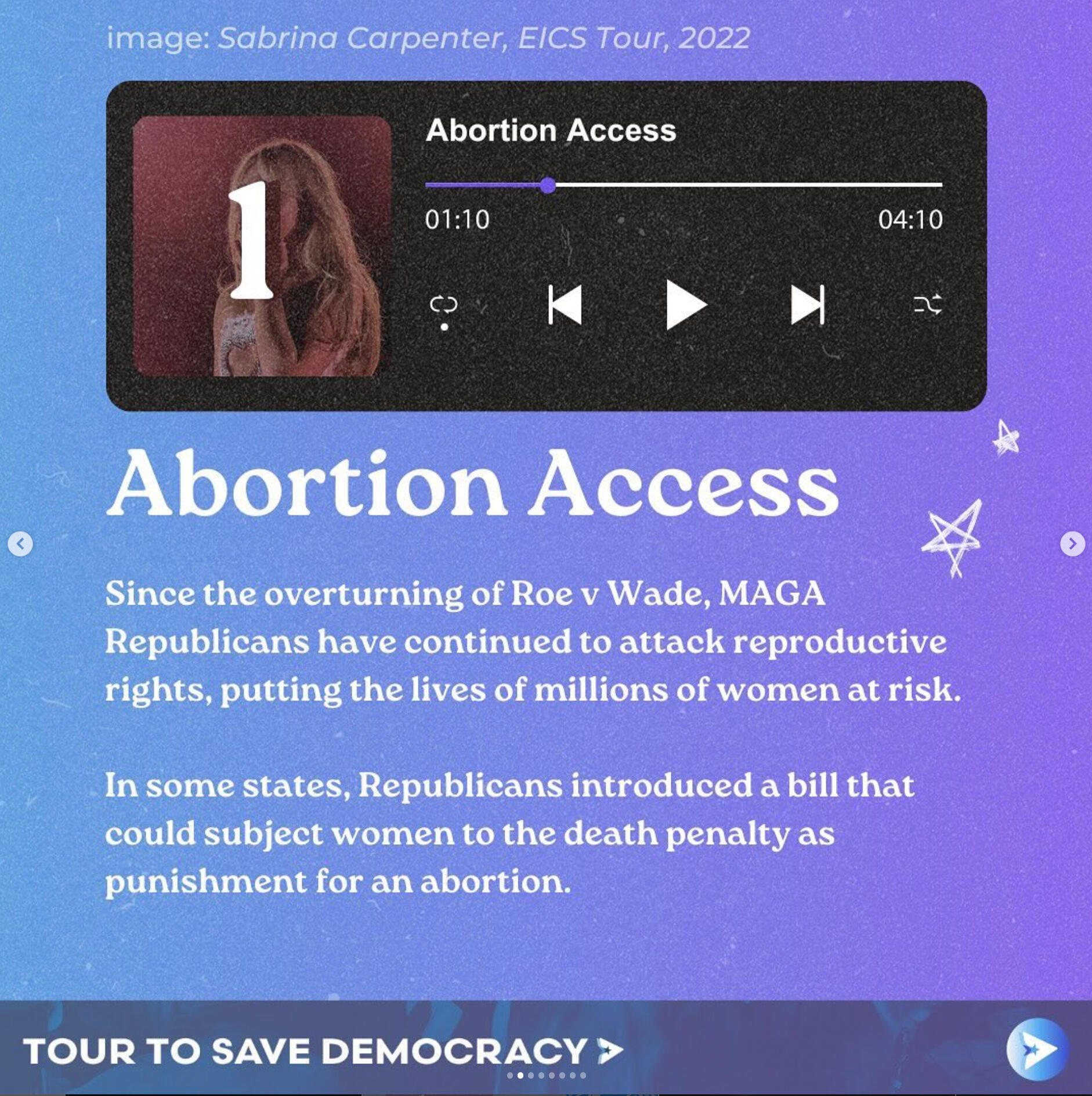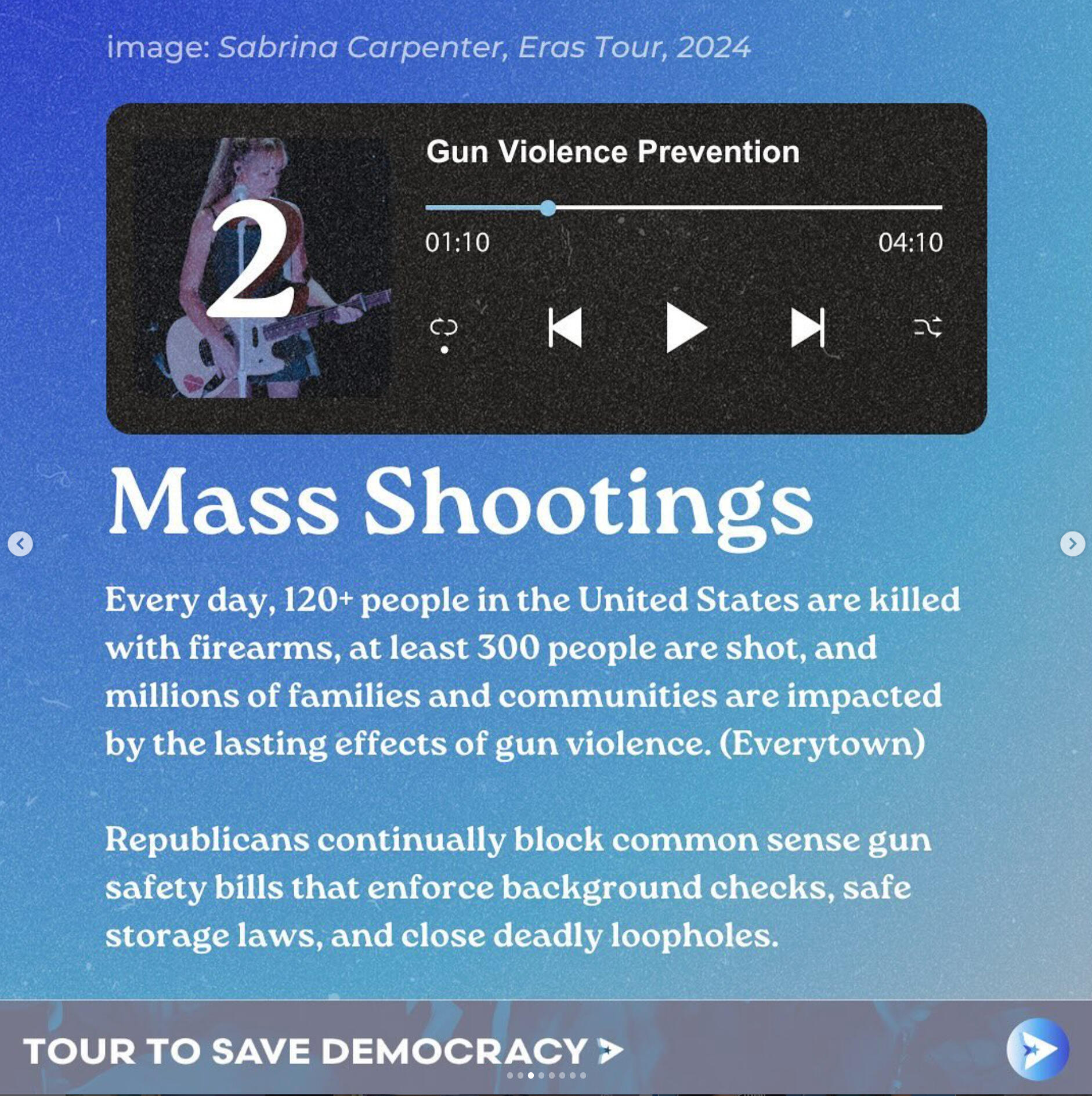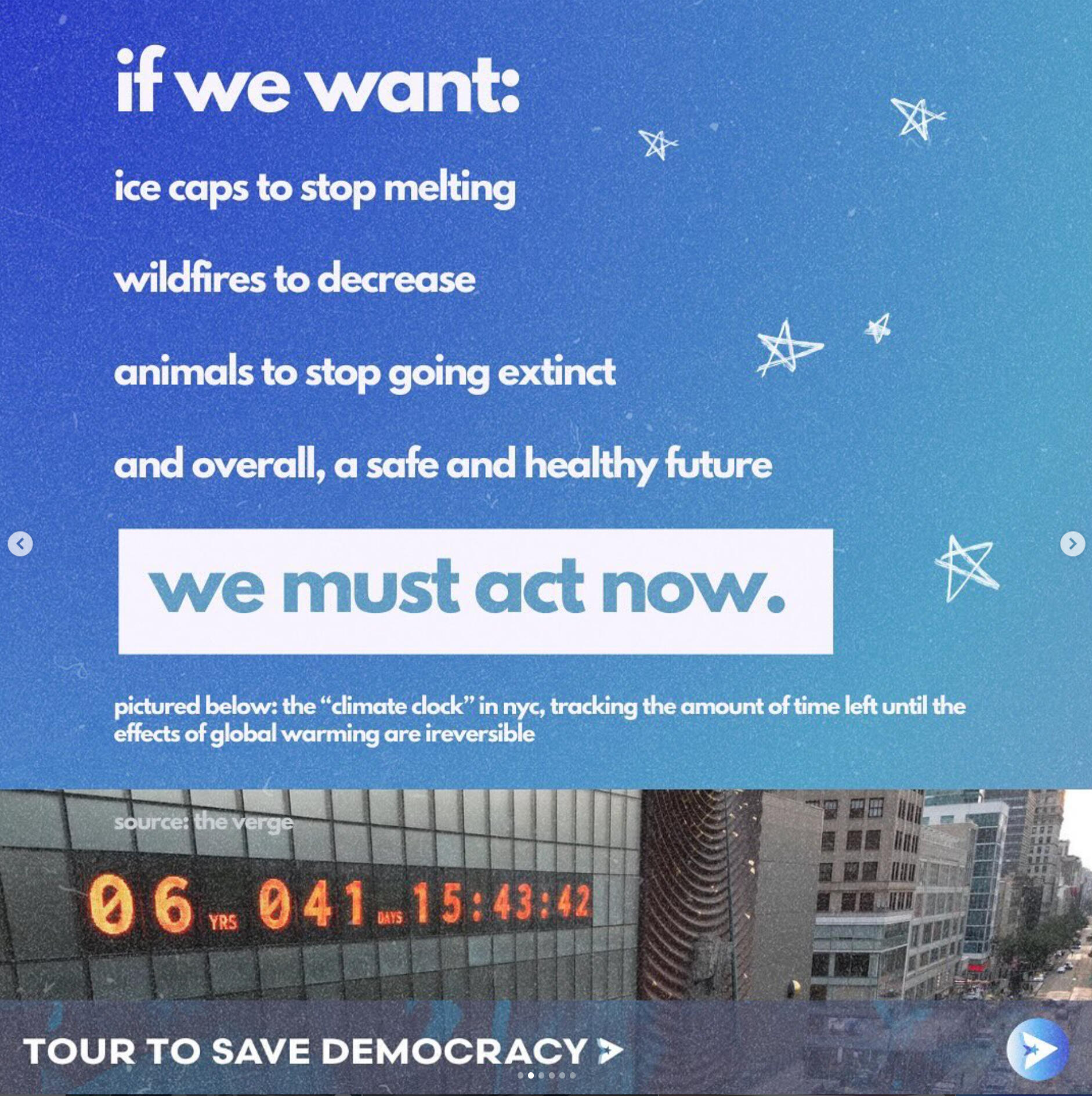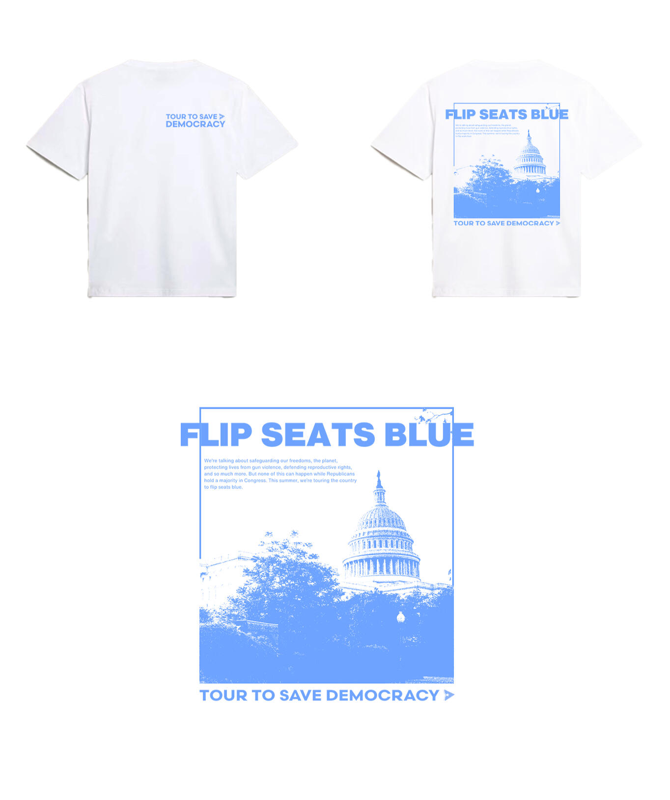 Tour to Save DemocracyAs Creative Director, I built the brand identity and graphics behind this one of a kind, gen z led project. Our work scaled from tangible, in-person events in over 21 cities across the US, averaging in hundreds of attendees at each stop, to social media initiatives with over 400+ million impressions.